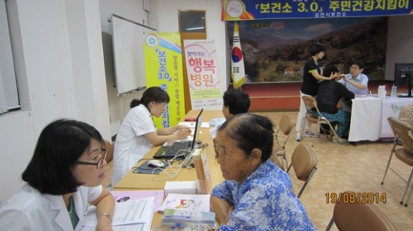 시는 새 정부 국정과제 추진을 위한 개방·공유·소통·협력의 정부 3.0에 대한 이해증진과 공감대 형성을 위한 사업의 일환으로 농어촌 의료 사각지대에 있는 저소득층, 독거노인, 다문화가정, 장애인 등 의료취약계층을 대상으로 혈압, 혈당 등 기초검사와 상복부, 유방, 전립선초음파 및 골밀도검사, X-ray, 당뇨병성 망막병증 여부와 백내장, 녹내장 여부 등을 위한 안저검사 등 무료검진을 실시하는 김천의료원의『찾아가는 행복병원』운영과 연계하여 통합 보건의료행정 사업을 펼쳤다. 혈관나이 측정 및 건강상담 46명, 구강상담 및 틀니통 배부 44명, 찾아가는 행복병원 무료검진 47명, 효노인복지센타(모암동소재)의 이미용 봉사 7명등을 실시하여 좋은 호응을 얻었다. 한편, 보건소 관계자는 “찾아가는 행복병원운영 연계로 취약계층에 대한 소외감 해소와 주민 스스로 건강을 챙길 수 있도록 통합 보건의료서비스를 강화하여 ‘건강한 삶의 질 향상’을 위하여 더욱 노력하겠으며 시민모두가 행복할 수 있도록 적극적인 통합보건의료서비스를 무료검진과 함께 매월 펼치겠다”고 밝혔다