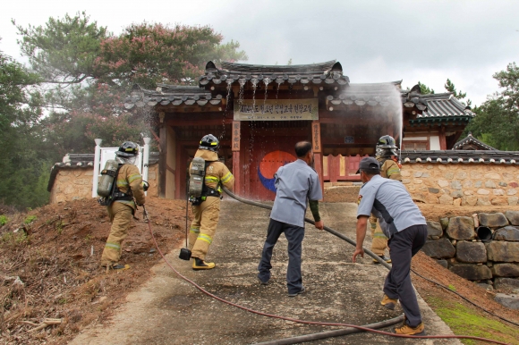 이번 훈련은 소방공무원 및 의용소방대 107명, 김천시 관계자 12명, 문화재관리원 및 마을주민 40명 등 총 160여명이 합동으로 화재 및 산불진화 훈련을 실시했으며, 민관이 하나가 되어 유기적인 공조체제를 구축했다.