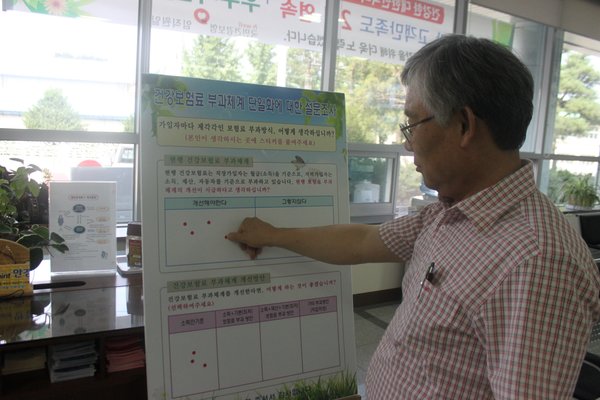 설문조사에 참여한 K모(55,남)는 직장에서 월 6만원을 보험료를 부담했지만,“실직해 지역가입자가 된 후 약간의 소득 및 재산 때문에 직장 다닐 때보다 더 많은 보험료를 납부하는 것이 힘들다”며“건강보험료 부과체계가 소득중심으로 개편돼야 한다”고 개선을 촉구했다.