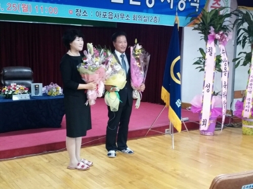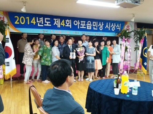 이날 시상식에서는 김병진 아포읍장, 최원호 김천시의회부의장, 백성철 시의원 등 내빈과 기관단체장, 이장 등 100여명이 참석한 가운데 제4회 수상자인 유영술 (주)건영산업 대표이사에게 상패와 꽃다발을 수여하고 그 공로를 치하하였다.