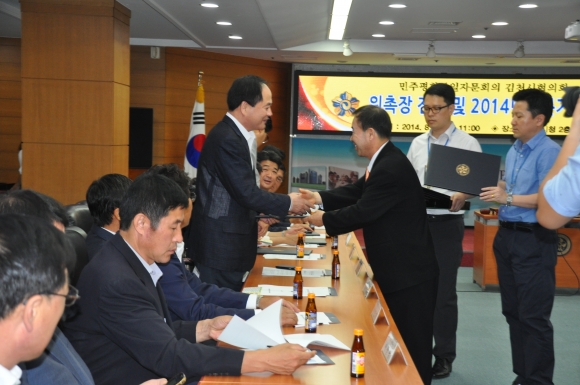 |  | | | ⓒ 김천내일신문 | | 김천, 민주평화통일 자문회의(회장 최용남)에서는 지난8월27일 김천시청회의실에서 자문위원52명이 참석한가운데 “위촉장전수 및 2014년 3/4분기 정기회의를 개최했다.