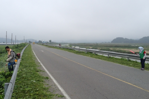 귀성객 맞이를 위해 연도변 제초작업과 쓰레기 수거