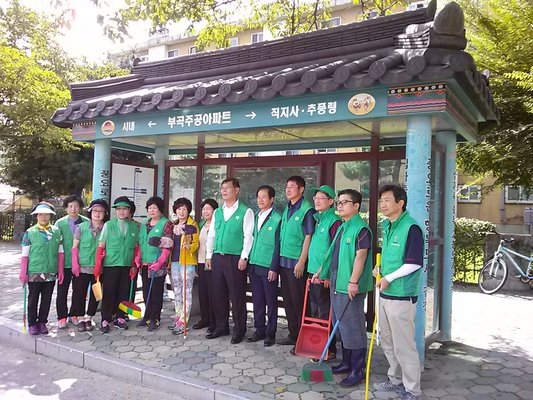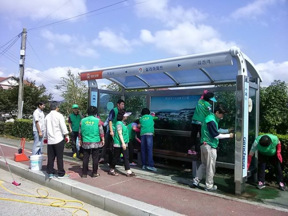 이번 버스승강장 환경정비는 지난 8월 30일 실시되었으며 대곡동 새마을협의회(남, 여) 회원을 주축으로 하여 버스승강장 내·외부 먼지 제거 및 청소, 불법 부착물(광고물) 제거 및 주변청소 등을 실시하였고, 더불어 버스승강장 시설물에 대한 안전점검도 동시에 실시하였다.