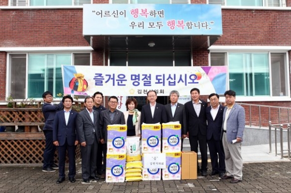 |  | | | ⓒ 김천내일신문 | | 김천시의회(의장 김병철) 시의원은 지난9월4일 우리민족의 최대 명절인 추석을 맞이하여 관내 사회복지시설인 지좌동 효사랑 노인복지센터를 방문하여 노인들과 따뜻한 정을 나누는 시간을 가졌다. 이번 행사는 추석 명절을 앞두고 지역 소외 계층을 보듬어 시민과 함께 나누는 봉사 문화를 확산시키고, 생생한 현장의 목소리를 듣기 위해 마련됐다.
