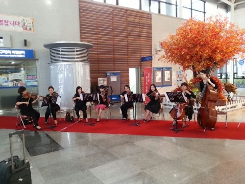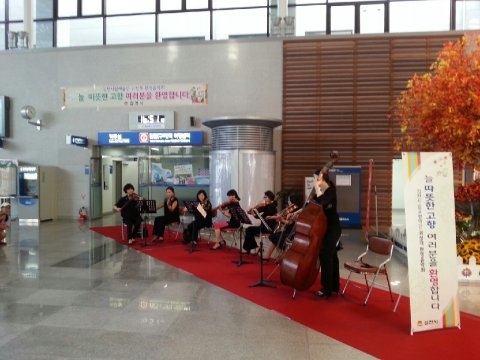 고향을 찾기 위해 분주히 움직이는 귀성객들 역시 맞이방 한 켠에서 울려 퍼지는 「엄마야 누나야」,「오페라의 유령」등 시립교향악단 현악파트의 감미로운 연주 선율에 잠시 걸음을 멈춰 고향의 추억과 정취에 잠기기도 했다.