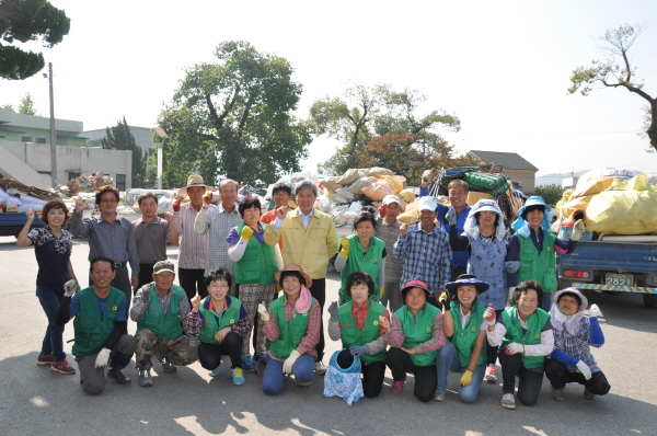 새마을협의회원들은 16일 마을에서 모은 트럭 16대분의 재활용품을 면사무소에서 플라스틱, 폐지, 헌 옷, 폐비닐, 농약빈병 등 종류별로 분류하였다. 회원들은 바쁜 농사일에도 불구하고 여름부터 추석연휴 후 각 가정과 마을에 쌓여 있는 쓰레기를 치웠으며, 오후에는 휴경지 배추경작지 잡초제거 뽑기 작업에 전 회원이 다시 한 번 힘을 모았다.