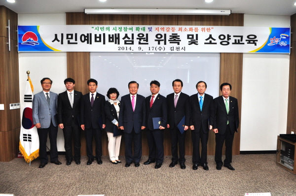 |  | | | ⓒ 김천내일신문 | | 김천시(시장 박보생)는 지난 9월17일 로제니아호텔 2층 세미나실에서 시민 배심법정 활성화를 위한 시민배심원제 판정관 및 심의대상결정위원, 시민예비배심원 122명을 위촉했다.
