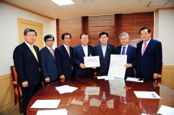 본 사업은 2011년 4월 제2차 국가철도망구축계획에 확정․고시되고 박근혜 대통령 공약사항에 반영되어 지난해 12월 예비타당성조사를 진행하는 등 순조롭게 추진하여 지역민들의 기대감을 고조시키고 있는 가운데, 남부내륙철도건설사업의 예비타당성조사 결과가 당초 예상보다 지연되고 있어 최경환 부총리 겸 기획재정부장관을 방문, 현 정부 공약실천 촉구 및 항의서한을 전달했다.