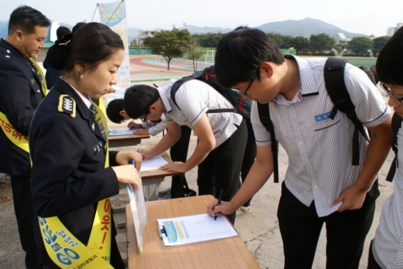 |  | | | ⓒ 김천내일신문 | | 김천경찰서(서장 정은식)에서는 9월18일 김천중학교에서 학교폭력 근절 자기약속 서명식을 가졌다.