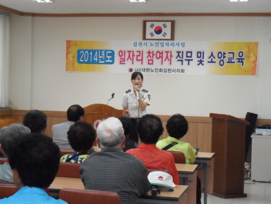 |  | | | ⓒ 김천내일신문 | | 김천경찰서(서장 정은식)에서는 지난9월17일 대한 노인회 시지부 회의실에서 노인일자리 창출 사업에 참여한 어르신 40명을 대상으로 교통안전교육을 실시하였다.
