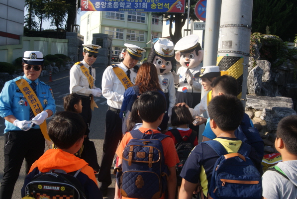 금일 캠페인에서는 어린이들의 보행중 사고를 예방하기 위하여 어린이들이 횡단보도를 건널 때에는 횡단보도 앞에 “선다”, 차가 오는지 주위를 “살핀다”, 안전한지를 확인한 후 “건넌다”의 세 규칙을 꼭 지켜주기를 당부하면서 홍보용 학용품 자를 배부하였다.