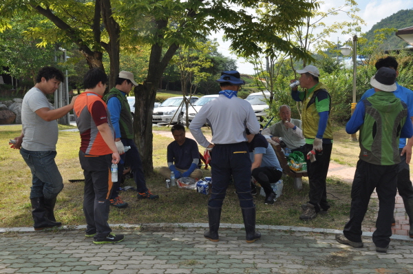 이날 김천사랑 701봉사팀은 김천,거창간도로확포장공사 건설사업을 담당하고 있는 한진중공업 교리국도건설 현장사무소(소장 양희신) 직원들과 함께하였다.