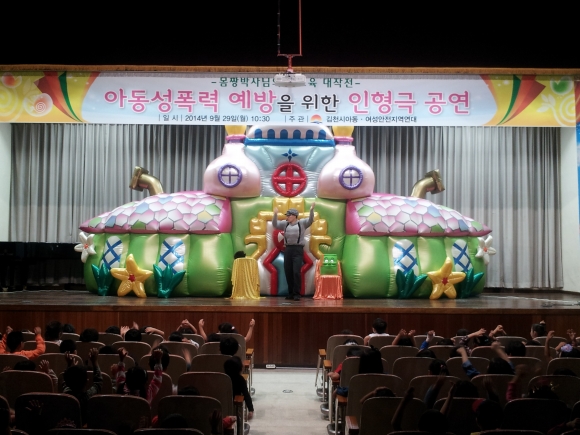 |  | | | ⓒ 김천내일신문 | | 김천시 아동․여성안전지역연대는 지난 9월 29일 아동의 눈높이 맞춘 성폭력 예방교육으로 종합사회복지관 대강당에서 30개소 어린이집 800여명의 어린이들을 대상으로 인형극 공연을 열었다. 이번 공연은 김천시 아동․여성안전지역연대 주관으로 “몸짱박사님의 성교육 대작전”이라는 제목으로 성폭력 예방을 위해 어린이들이 꼭 알고 지켜야 할 수칙들을 신나고 재미있는 인형극으로 진행되었으며, 몸짱박사님의 복화술 성폭력 예방교육, 어린이들을 성폭행하려는 나쁜 마음을 퍼트리는 성폭력대마왕과의 박진감 넘치는 한판 승부등 어린이의 눈높이에 맞는 상황극과 복화술로 어린이들의 시선을 사로잡았다.