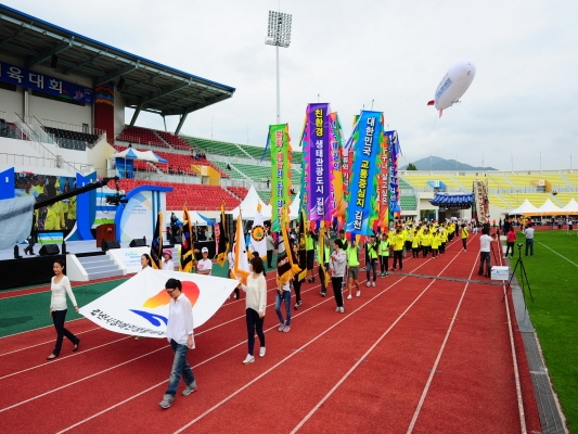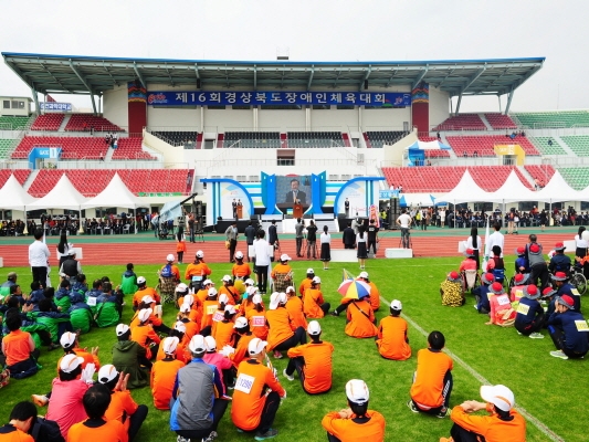 |  | | | ⓒ 김천내일신문 | | 제16회 경상북도장애인체육대회 “다함께, 굳세게, 끝까지”라는 구호아래 김관용 경상북도지사, 박보생 김천시장, 이철우 국회의원, 김병철 김천시의회 의장을 비롯한 경북도내 23개 시군 선수·임원 등 약 3,000명이 참석한 가운데 김천 종합운동장에서 성황리에 개최됐다.
