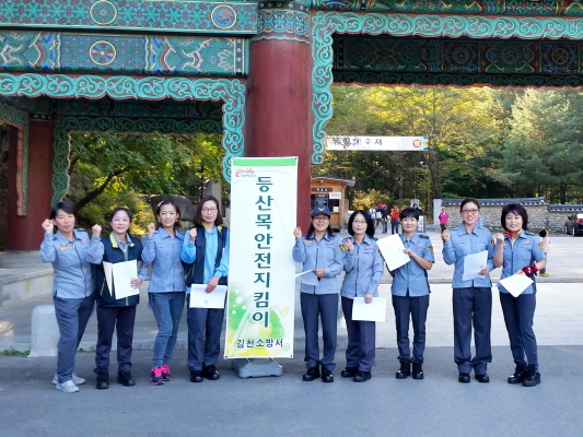 |  | | | ⓒ 김천내일신문 | | 김천소방서(서장 박근오)는 지나10월6~7일 이틀간에 걸쳐 황악산 직지사 입구와 수도산이 위치한 증산면 일원에서 가을철 산악사고 예방을 위한 '등산목 안전지킴이' 캠페인 활동을 전개했다.