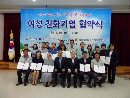 |  | | | ⓒ 김천내일신문 | | 김천시(시장 박보생)여성새로일하기센터에서는 지난10월8일 종합사회복지관 3층 강당에서 김천시 관내 우수 13개 기업체와 『여성친화기업 협약식』을 가졌다.