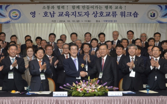 |  | | | ⓒ 김천내일신문 | | 경상북도교육청(교육감 이영우)은 10월 10일부터 11일까지 The-K경주호텔에서 경상북도와 전라남도 교육지도자(교육장) 및 실무자 등 70여명이 참석한 가운데‘영․호남 교육지도자 상호 교류 워크숍’을 개최했다.