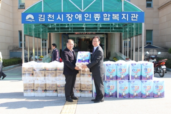|  | | | ⓒ 김천내일신문 | | 신한은행 김천금융센터(센터장 김도형)은 지난10월 14일 김천시장애인종합복지관(관장 박선하)을 찾아 지역장애인을 위한 후원물품을 전달하였다.