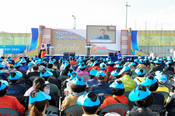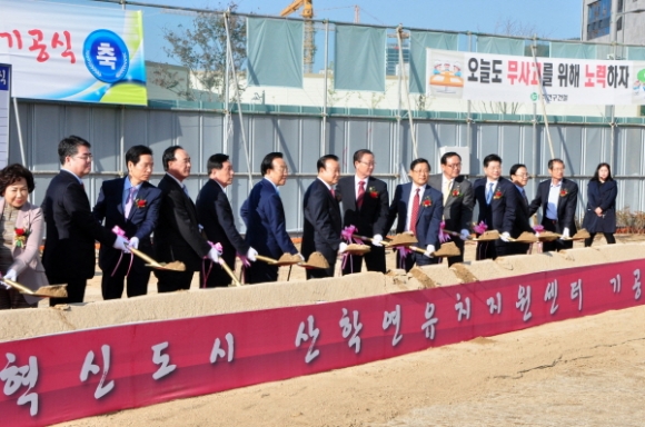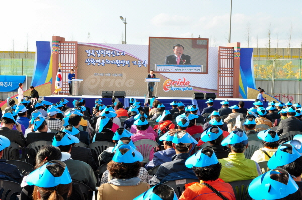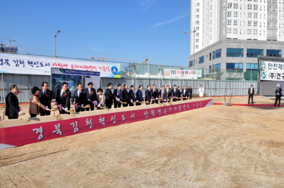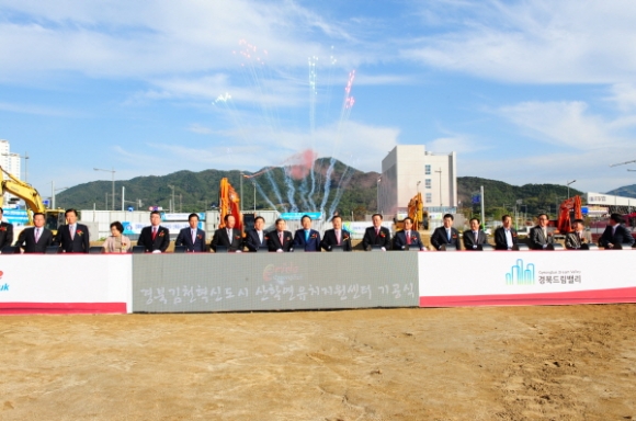|  | | | ⓒ 김천내일신문 | | 김천시(시장 박보생)는 지난 10월14일 김천혁신도시 산학연유치지원센터 건립부지 내에서 김관용 경상북도지사, 김병철 김천시의회 의장, 윤성규 경북도의회 건설소방위원장, 지역기관장 및 지역주민 등 500여명이 참석한 가운데 청사 기공식을 개최했다.