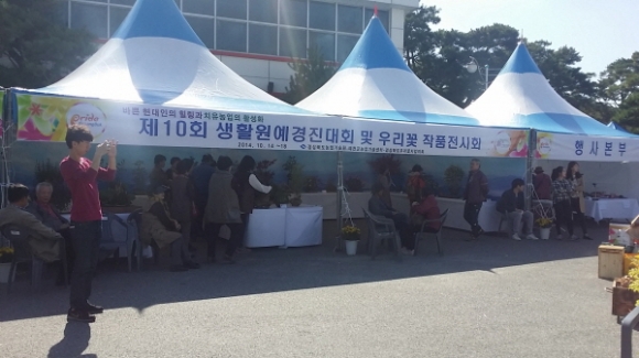 도 단위 생활원예경진대회는 올해 10회로 이번 경진은 아이디어정원, 접시정원, 일반전시작품 3개 분야로 경진이 치러졌으며 일반전시작품은 시. 군별 5점씩 완성품을 출품하여 경진을 벌였고 2개 부분(아이디어정원, 접시정원)은 시. 군에서 분야별 1명씩 선발되어 현장에서 직접경진을 통한 수상이라 더욱더 값진 의미가 있는 상이였다.