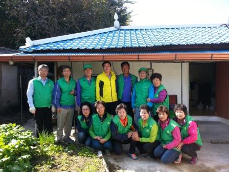 금년에는 백옥1길에 거주는 강모씨 댁과 구농고길에 거주하는 오모씨 댁을 방문하여 주거환경 개선을 위해 낡고 해진 벽지 및 장판을 제거하고 깨끗한 새로운 벽지 및 장판으로 교체해 주었으며, 기울어진 천장과 지붕등도 수리를 해주었다.