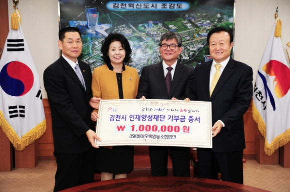 김응교 DSK바이오텍영농조합법인 회장은 “혁신도시와 일반산업단지의 성공적 건설로 새로운 도약을 준비하고 있는 김천시에 우수한 인재육성에 적극 동참하고자 장학기금 100만원을 기탁하게 됐다.”고 말했다.