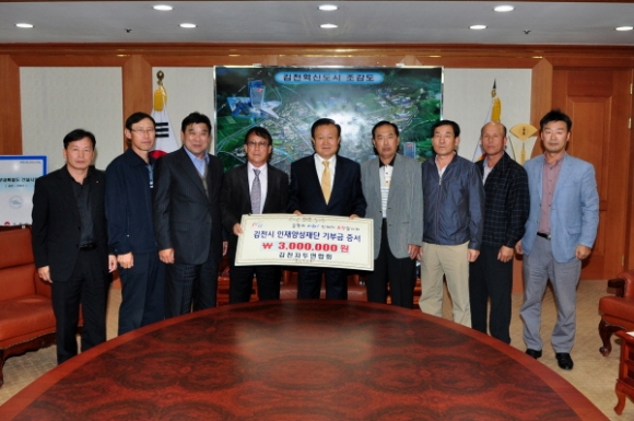 또한, 양정규 김천자두연합회 회장은 3백만원을 김천시인재양성재단에 기탁하면서 “적은 돈이나마 김천의 인재를 육성하는데 도움이 되었으면 한다”고 겸손을 표하였다.