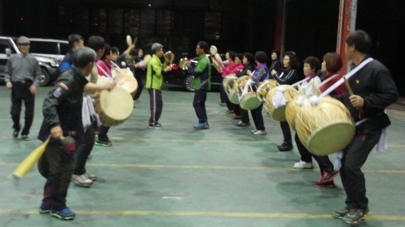|  | | | ⓒ 김천내일신문 | | 김천시 대신동 농악단은 오는 11월 11일 개최되는 제5회 빗내농악경연대회 우승을 목표로 박보용 농악단장을 비롯한 40여명의 단원들은 일주일에 3회씩 농산물도매시장에 모여 연습을 하고 있다. 추운날씨에도 이마에 송글송글 맺힌 땀이 농악단의 열정을 보여주고 있다. ‘더 엉덕 쿵~덕 쿵~덕 쿵~쿵’ 장단에 맞춰 꽹과리, 장구, 북, 징을 다루는 단원들의 어깨가 연방 들썩인다.