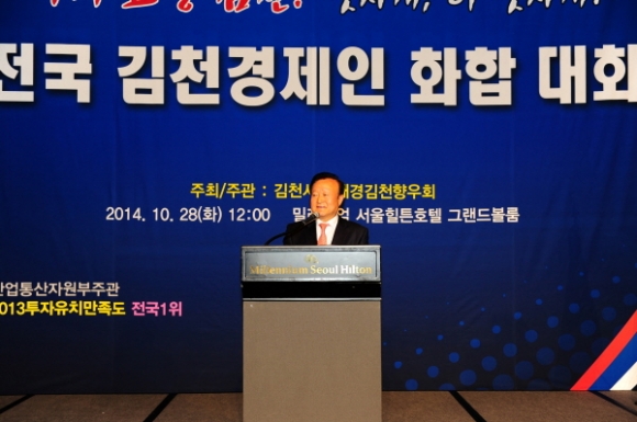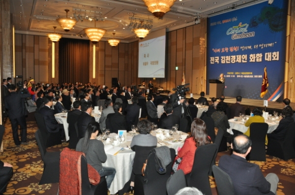 |  | | | ⓒ 김천내일신문 | | 10. 28(화) 12시 밀레니엄 서울힐튼호텔(서울시 중구 소재)에서 박보생 김천시장, 이철우 국회의원, 이홍기 재경김천향우회장 등과 김천출신 전국 경제인 및 향우회원 270여명이 참여한 가운데 ‘전국 김천경제인 화합대회’가 개최되었다.