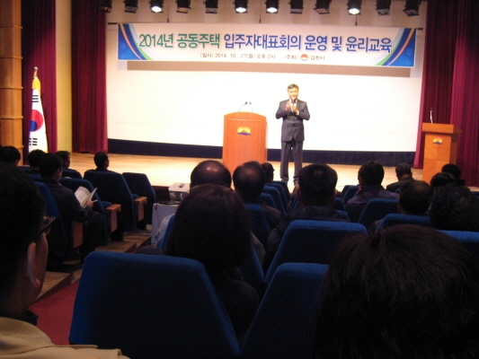 |  | | | ⓒ 김천내일신문 | | 김천시는 지난10월 27일 문화예술회관 소공연장에서 공동주택 입주자대표회의 구성원 및 입주민 등 100여명이 참석한 가운데 「2014년 공동주택 입주자대표회의 운영 및 윤리교육」을 실시하였다.