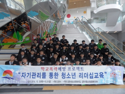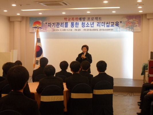 |  | | | ⓒ 김천내일신문 | | 김천시(시장 박보생)는 학교폭력을 예방하고 건전한 청소년 문화 육성에 기여하기 위해 청소년문화의집, 김천시청소년상담복지센터와 공동 주관하고 김천경찰서, 김천중학교와 연계하여 학교폭력예방 프로젝트 “자기관리를 통한 청소년 리더십 교육”을 지난 10월 30일, 31일 이틀에 걸쳐 김천파크호텔과 녹색미래과학관 등지에서 실시했다.