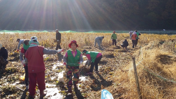 |  | | | ⓒ 김천내일신문 | | 김천시 지례면새마을협의회(회장 배병휘, 송쌍임)는 11월 5일 관내 도곡리 휴경농지에 심은 콩을 수확했다.