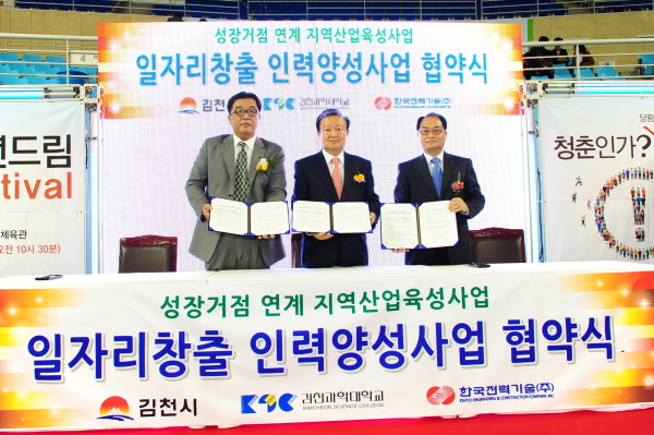 - 김천시 ⇔ 김천과학대학교 ⇔ 한국전력기술(주) - - 공공기관 인력난해소 및 지역일자리 창출 기대 -