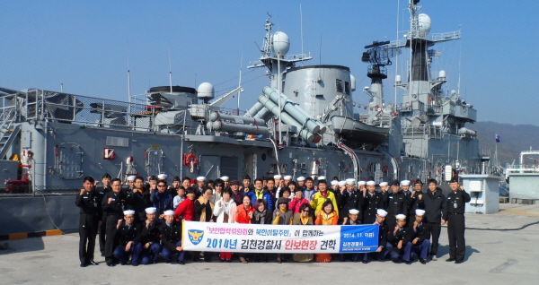 |  | | | ⓒ 김천내일신문 | | 김천경찰서(서장 김훈찬)는 지난11월9일 경남 창원시 진해구에서 경찰서 보안협력위원과, 북한이탈주민, 보안 계장 등 총 30명은 해군 제 3함대 소속 김천함 및 해군 사관학교 일대 견학을 통해 안보를 다지고 서로간의 화합하는 시간을 가졌다.
