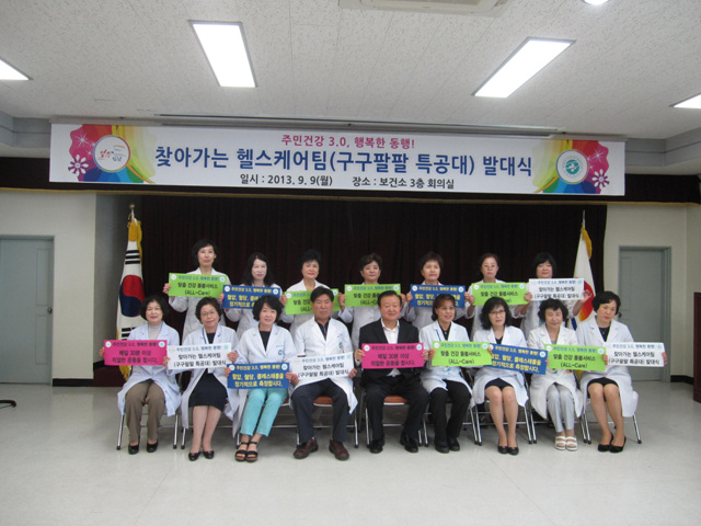 ‘구구팔팔특공대’는 의료기관과 보건의료서비스에 대한 접근성인 낮은 보건진료소를 중심으로 행복한 동행 정부 3.0시대 실현을 위해 의료취약지 주민에게 맞춤형 건강관리서비스를 제공하는 사업팀으로 주1회 정해진 날짜에 개별방문 및 마을회관을 방문하여 만성질환예방 관리하는 서비스이다.