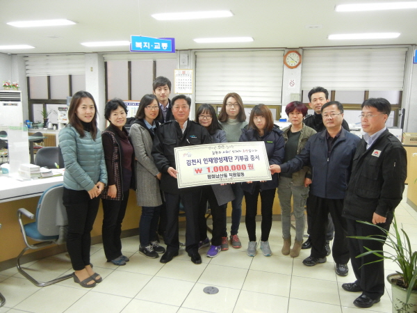 지난 11월 14일 신장호 평화남산동장은 김천의 미래는 교육에 의해 좌지우지 되며, 우수한 인재육성에 조금이나마 보탬이 되고자 십시일반으로 김천시인재양성재단에 1백만원을 기탁하게 됐다고 말했다.