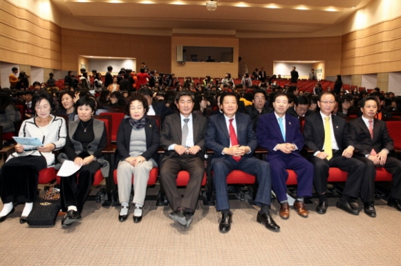 이날 행복공연 연극제자리에는 김천시청 임덕수 안전행정국장, 김병철 의장, 김응규,나기보,배영애도의원, 이선명 의원, 박희주의원,배낙호의원, 황병학의원, 이명기의원, 이진화의원,나영민의원,전ㄱ몌숙의원,박근헤의원, 박광제 예총회장을 비롯한 한일예고,한일여고 재학생들과 무지개회원들이 참석했다.