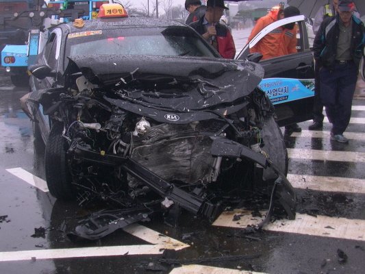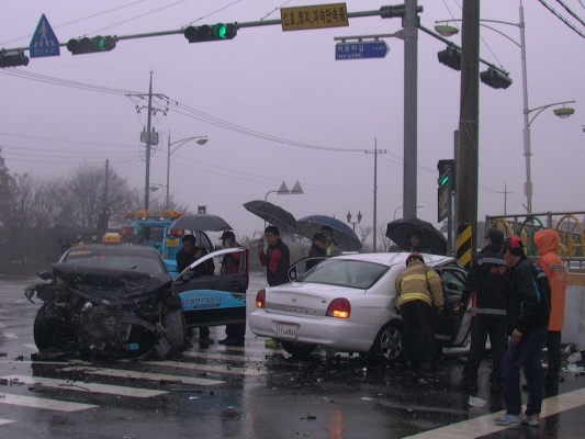 지난11월24일 13시29분경 다수동 KT&G 앞 도로상 게인택시와 승용차가 정면 충돌하는 교통사고가 발생했다.