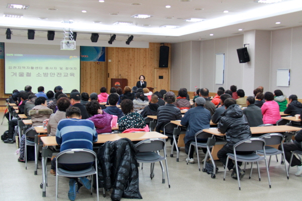 |  | | | ⓒ 김천내일신문 | | 김천소방서(서장 박근오)는 지난11월24일 김천시 근로자종합복지관에서 김천지역 자활센터 종사자 및 참여자 100여명을 대상으로 겨울철 소방안전교육을 실시하였다.