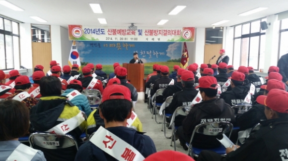 |  | | | ⓒ 김천내일신문 | | 지례면(면장 최주섭)에서는 지난 11월 26일 면사무소 회의실에서 행정의 현안사항 전달과 산불예방의 경각심을 심어주기 위하여 이장회의 및 산불예방 발대식을 가졌다.