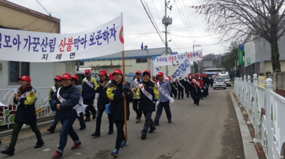 이날 행사에는 지례면 체육회, 바르게살기협의회, 농악단, 방위협의회 등에서 산불예방 홍보 현수막을 자발적으로 주요 지점에 게첨하여 산불 제로화 분위기를 확산시키는데 동참했다.