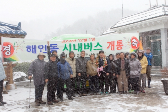 |  | | | ⓒ 김천내일신문 | | 김천시 부항면(면장 나혜란) 해인리(해인동) 및 하대리(지시마을)에서 지난 12월1일 산간오지마을에 대한 신규버스노선 개통에 따른 환영식을 가졌다.