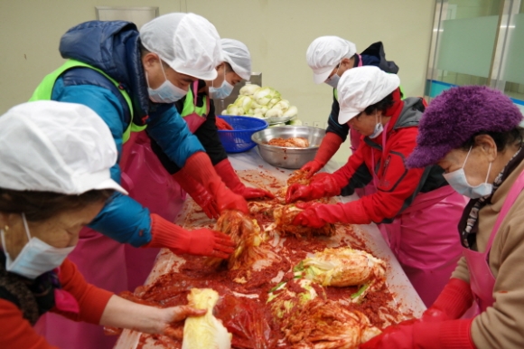 김천경찰서(서장 김훈찬)에서는 지난12월3일 평화동에 있는 무료급식시설‘야고버의 집’에서 청렴동아리(청정이수) 회원 12명이 어려운 이웃에 대한 행복나눔 일환으로‘김장담그기 및 배식봉사’ 활동을 펼쳤다.