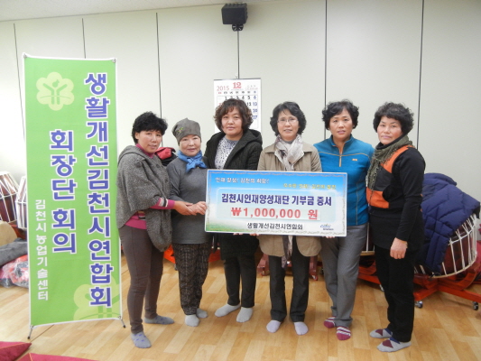 |  | | | ⓒ 김천내일신문 | | 생활개선김천시연합회(회장 정정란)는 지역 교육발전을 위해 써달라며 지난12월5일 김천시인재양성재단(이사장 박보생)에 장학기금 117만원을 기탁했다.