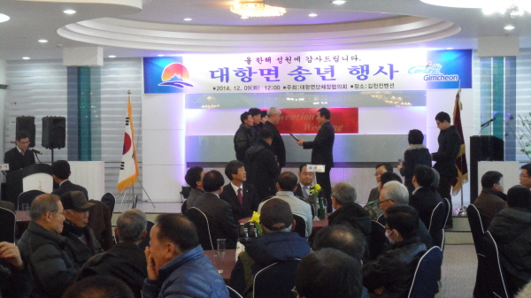 이날 행사는 2014년 한해를 마감하면서 대항면 발전을 위해 노고를 아끼지 않은 조직단체 임원과 회원들을 위로하기 위해 마련됐다. 행사에서는 면민 화합에 노력한 공로가 있는 심원태 전 시의원, 전풍오 직지농악단장, 정길득 대항면 새마을지도자협의회장, 강복연 대항면 새마을부녀회장에 대한 감사패가 전달됐고 오찬 후에는 단체별 노래자랑으로 흥겨운 시간을 보냈다.