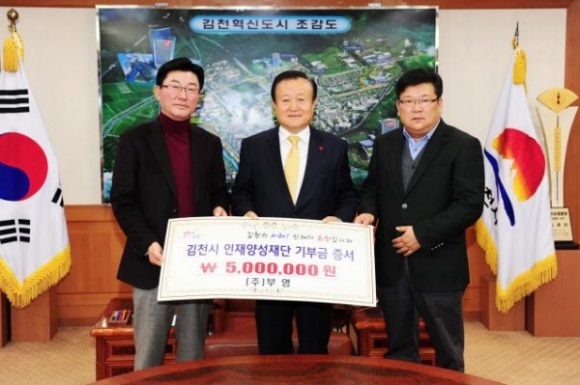 지역인재의 육성 및 김천의 교육발전을 위해 (주)부영(회장 김현석)이 김천시 인재양성재단(이사장 박보생)에 장학기금 500만원을 쾌척했다.