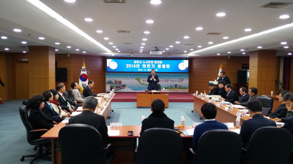 회의는 위원장 인사말 및 위원 소개, 2014년 노사민정협력 활성화 사업 추진실적과 2015년 사업 추진계획보고 순으로 진행 되었다.