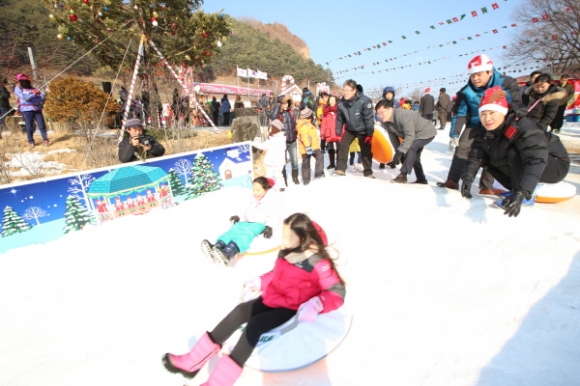 “산타마을 신나는 눈썰매장” 코레일(사장 최연혜)은 20일(토) 산타마을을 개장하고 2015년 2월 15일(일)까지 58일간 V-train(백두대간협곡열차)으로 명소가 된 경북 봉화 분천역에 눈과 산타를 테마로 꾸며진 ‘산타마을’을 운영한다. |  | | | ⓒ 김천내일신문 | |