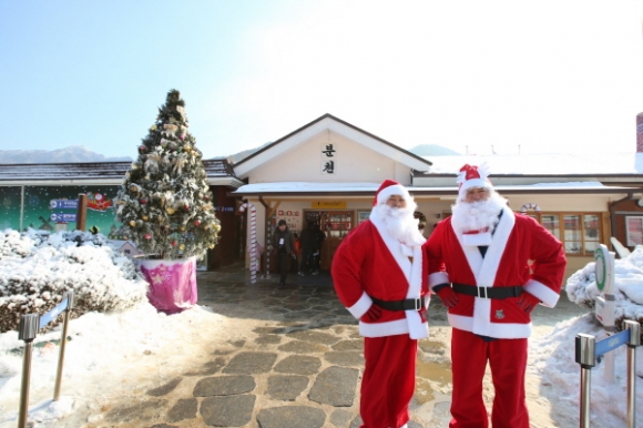 “분천역 산타마을 개장” 코레일(사장 최연혜)은 20일 산타마을을 개장하고 지난 2월 15일까지 58일간 V-train(백두대간협곡열차)으로 명소가 된 경북 봉화 분천역에 눈과 산타를 테마로 꾸며진 ‘산타마을’을 운영한다고 밝혔다.