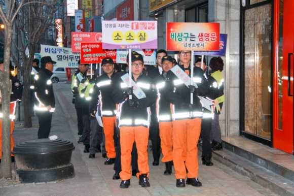 김천소방서 의용소방대와 김천시 안전모니터봉사단 김천시지부, 김천소방서 직원이 함께 한 이날 캠페인은 김천시 신음동 일원에서 이마트 김천점과 롯데마트 김천점, 주변 지하 다중이용업소에 대해 비상구 안전관리 중요성을 홍보하고, 현장을 방문하여 현장 지도행정을 펼쳤다.